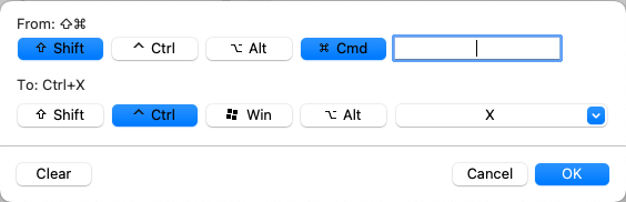 3. Cliquez dans le champ texte correspondant et appuyez sur la touche ou le raccourci clavier que vous voulez utiliser avec un clic de souris pour déclencher un clic droit ou un clic du milieu.
