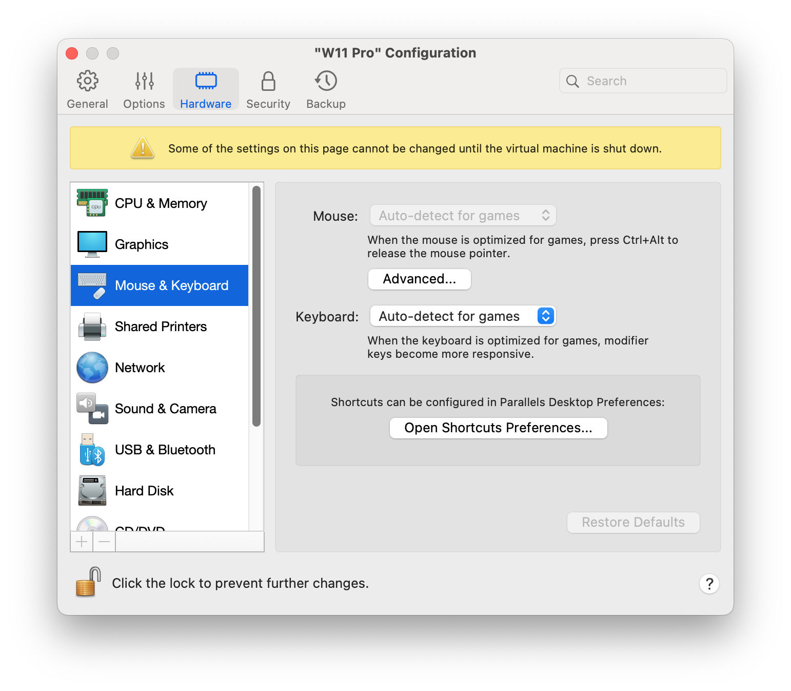 * **Ottimizza per giochi**. Se sposti involontariamente il mouse su macOS durante l'utilizzo di un gioco, seleziona questa opzione per far funzionare il mouse unicamente nella macchina virtuale.