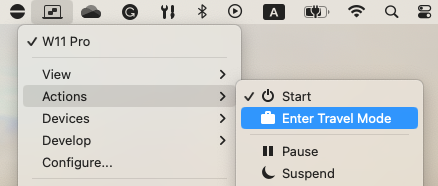 * Se Windows è in esecuzione in modalità Coherence, fai clic sull'icona Parallels Desktop nella barra dei menu e fai clic su **Azioni** > **Avvia Modalità Viaggio**.<br>