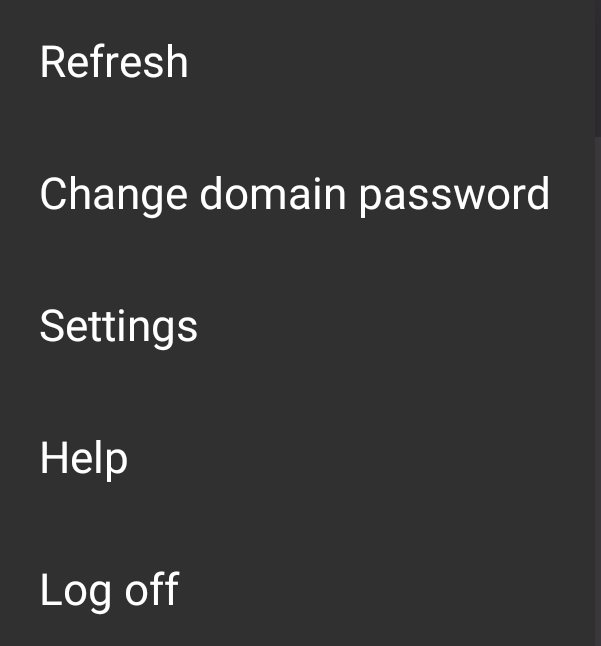 * **Change domain password**. Tap this item to change the user's domain password. Depending on Parallels RAS configuration you will be able to change the password either via Parallels Client itself or a third-party identity provider. To be able to change the password via Parallels Client, you must know the current password.