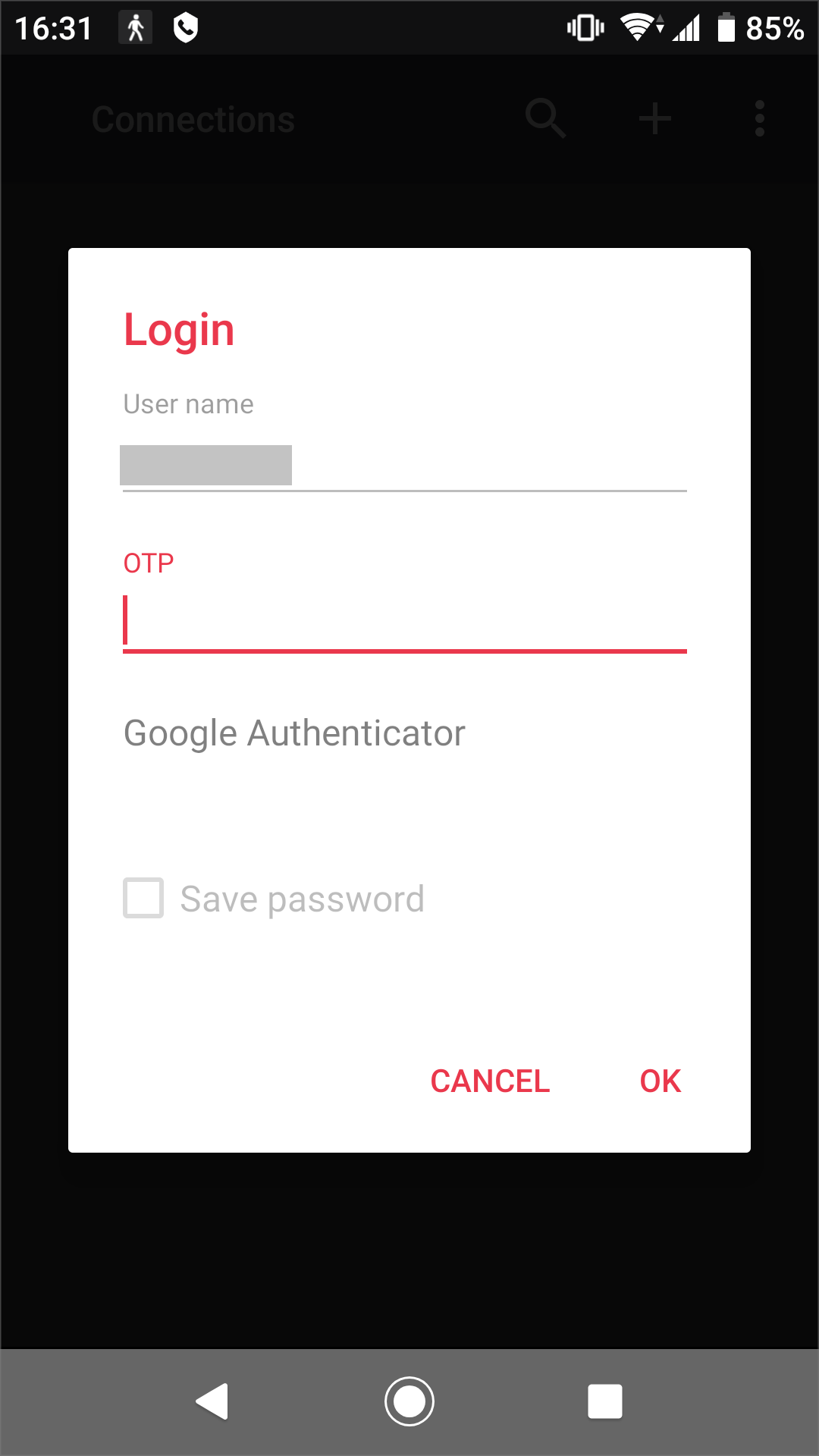 To gain a general understanding of how the connection process may look like if MFA is configured, please see the **Authentication Using Google Authenticator** and **Authentication Using RADIUS** subsections below.