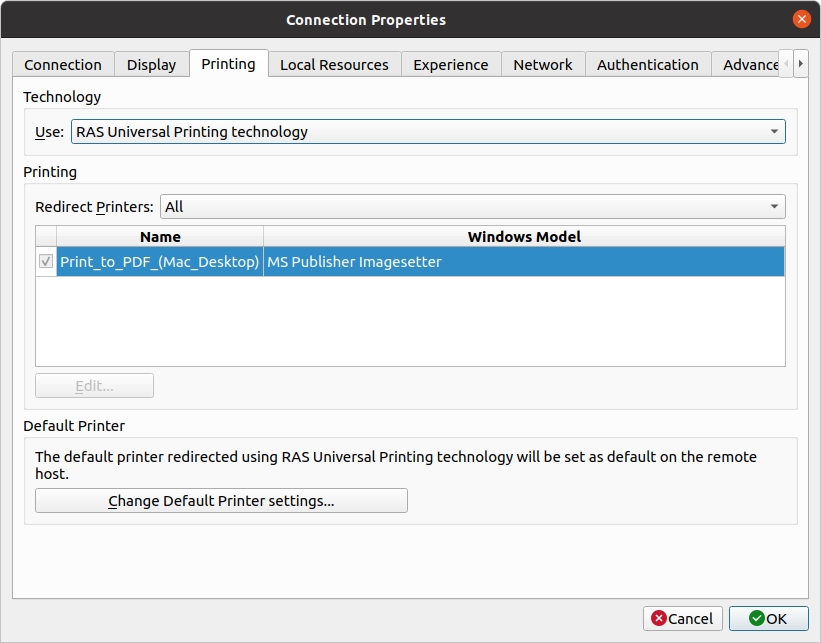 Select the Update the remote default printer if the local default printer is changed option to change the remote default printer automatically when the local default printer is changed. Please note that the new printer must have been previously redirected.