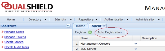 _DualShiled_10.png Once the Agent Auto Registration is set, go back to the RAS Console and select Yes. You should see a message that the Dual Shield agent has been successfully registered.
