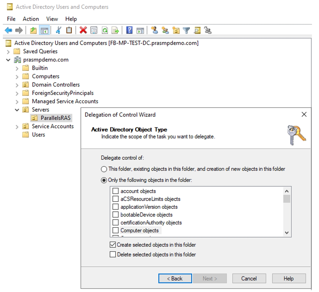 Create an organizational unit where the Parallels RAS infrastructure servers will be joined to.