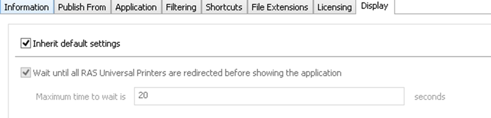 You can see from the example below that the Inherit default setting option is set for all applications to wait until RAS Universal Printers are redirected.