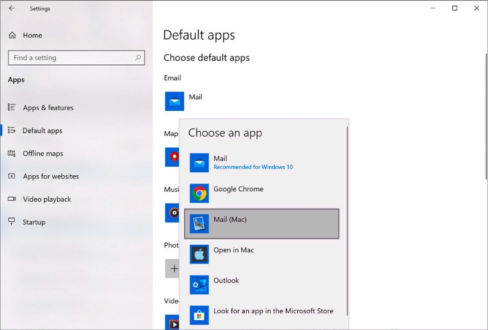 In Windows 10 or earlier, to set all emails that you open in Windows to always open in macOS, do the following: