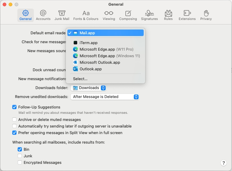 Click an email application in the Email section and select a macOS email app.