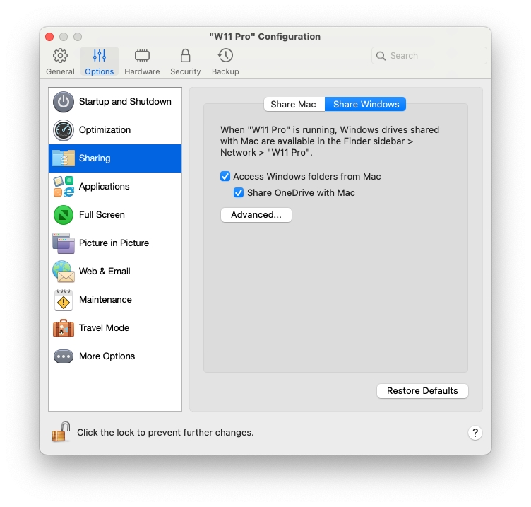 Remarque : dans Parallels Desktop pour Mac Pro Edition, vous pouvez également partager vos dossiers Dropbox Entreprises et Box avec Windows.