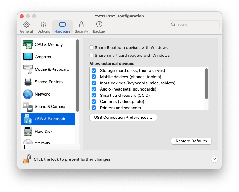 允许外部设备(仅在 Parallels Desktop for Mac Business Edition 中有提供)