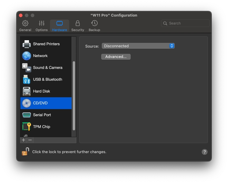 若要開啟這些設定,請選擇「動作」>「設定」>「硬體」,然後按一下「CD/DVD」。