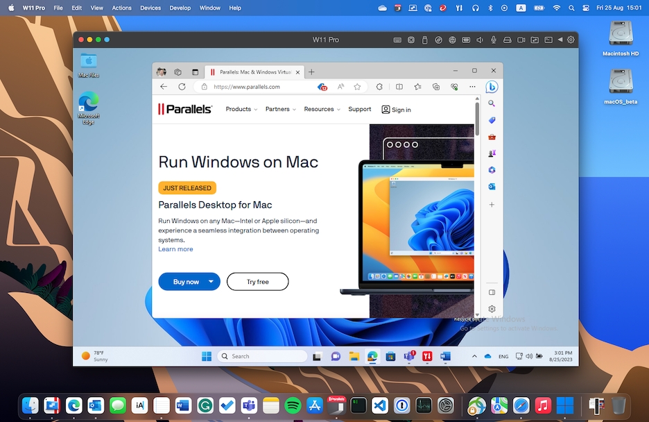 按一下功能表列中的 Parallels Desktop 圖示,然後選擇「查看」>「退出融合 (Coherence)」。