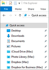 Acceda a Windows y vaya a Equipo. Las carpetas para iCloud, Dropbox o Google Drive se encuentran en la sección Favoritos (o Acceso rápido en Windows 10). Puede usarlas para cargar y descargar archivos de la nube.