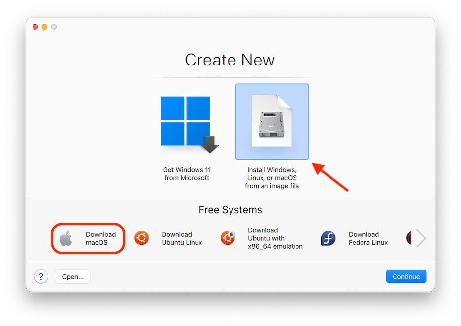 Si vous souhaitez installer une autre version de macOS, utilisez l'option Installez Windows, Linux or macOS à partir d'un fichier image et suivez les instructions à l'écran. Cette méthode permet d'utiliser le glisser-déposer.