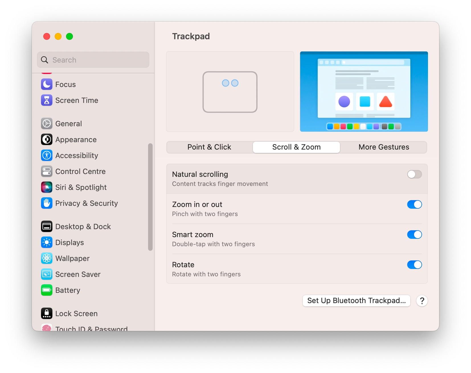 Parallels Desktop offre un supporto limitato dei gesti multitouch nelle macchine macOS guest sui Mac con Apple Silicon. Al momento sono supportati due gesti: lo scorrimento in verticale e in orizzontale, la rotazione e l'ingrandimento e la riduzione mediante pizzicamento.