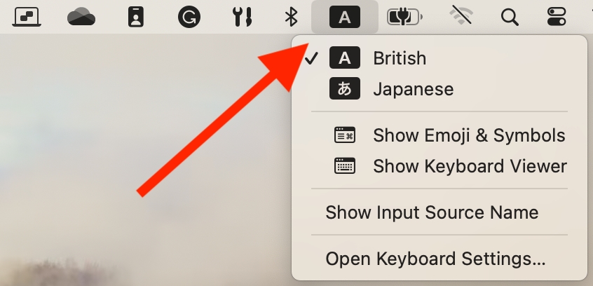 Seleccione el idioma deseado en el menú Entrada disponible en la barra de menús de macOS.